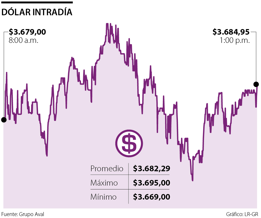 Ayer, el dólar cerró en un precio promedio de $3.682,29, lo que representó un aumento de $26,55 frente a la Tasa Representativa del Mercado (TRM), que para la jornada se ubicó en $3.655,74.