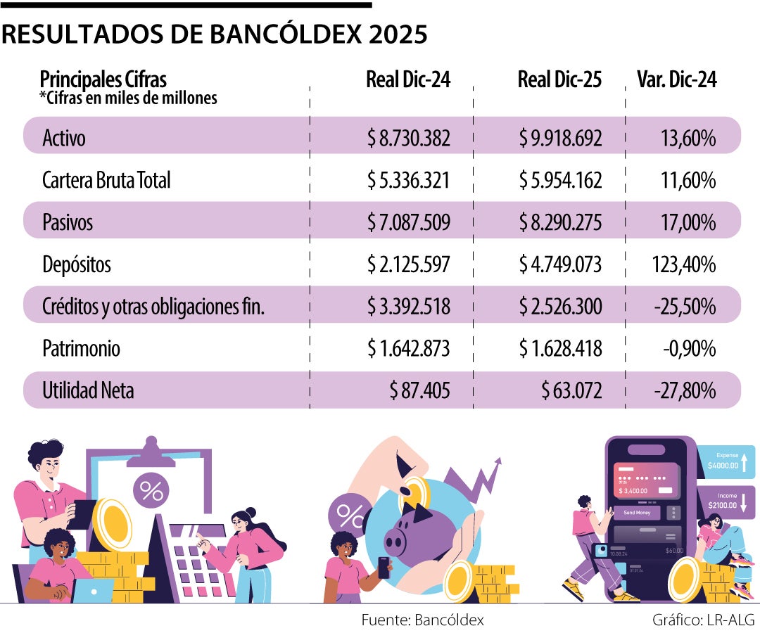Las utilidades de Bancóldex durante el año pasado cayeron 27,8% frente a 2024. De acuerdo con la entidad la cifra llegó hasta $63.072 millones en 2025, mientras que para hace dos años el valor era de $87.405 millones.