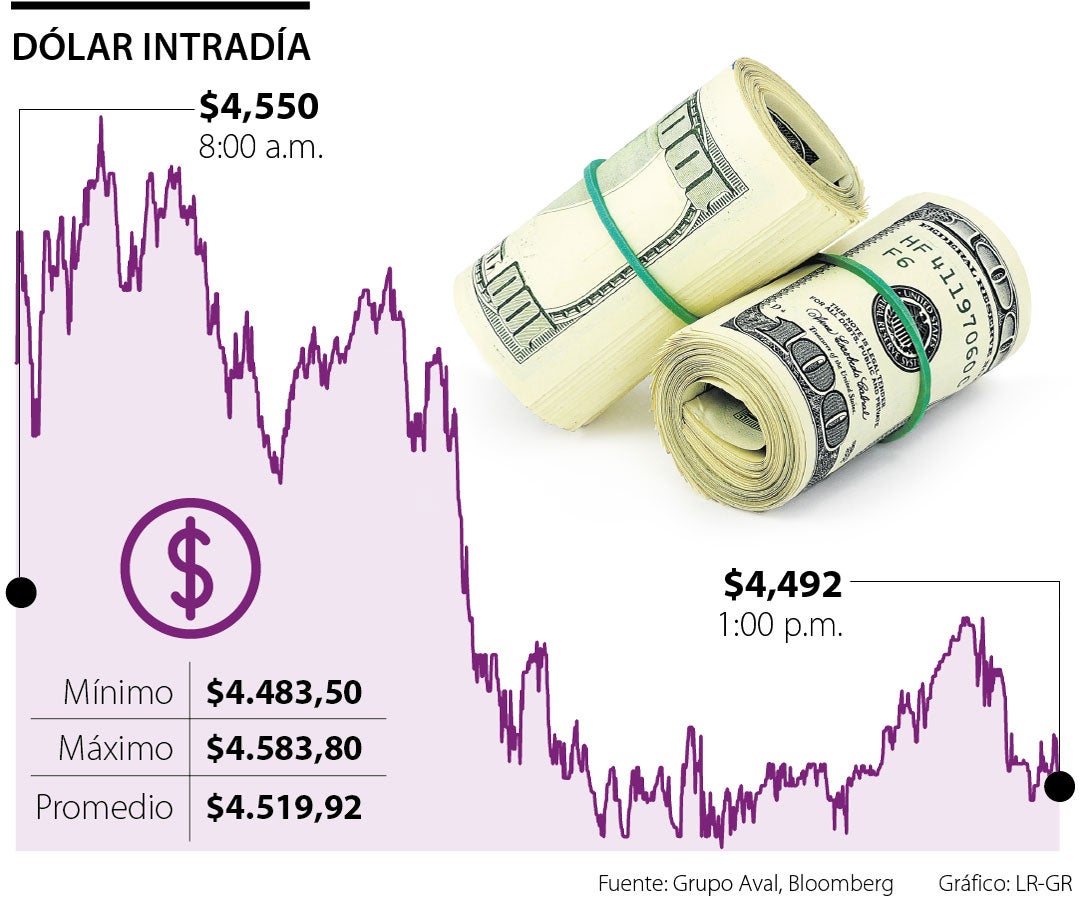 Este jueves, la divisa estadounidense cerró a $4.519,92, lo cual representó una caída de $38,13 frente a la Tasa Representativa del Mercado (TRM), la cual se ubicó en $4.558,05 ayer. El precio máximo, registrado por la plataforma Set-FX fue $4.583,80 y el mínimo fue de $4.483,50. Durante la jornada se negociaron más de US$1.489 millones a través de 2.877 transacciones.
