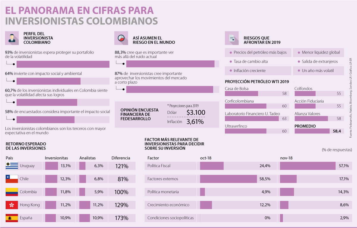 Un nuevo informe sobre el perfil del inversionista colombiano revela que de cara a las inversiones de 2019, 60,7% siente que la volatilidad podría estar afectando sus objetivos.