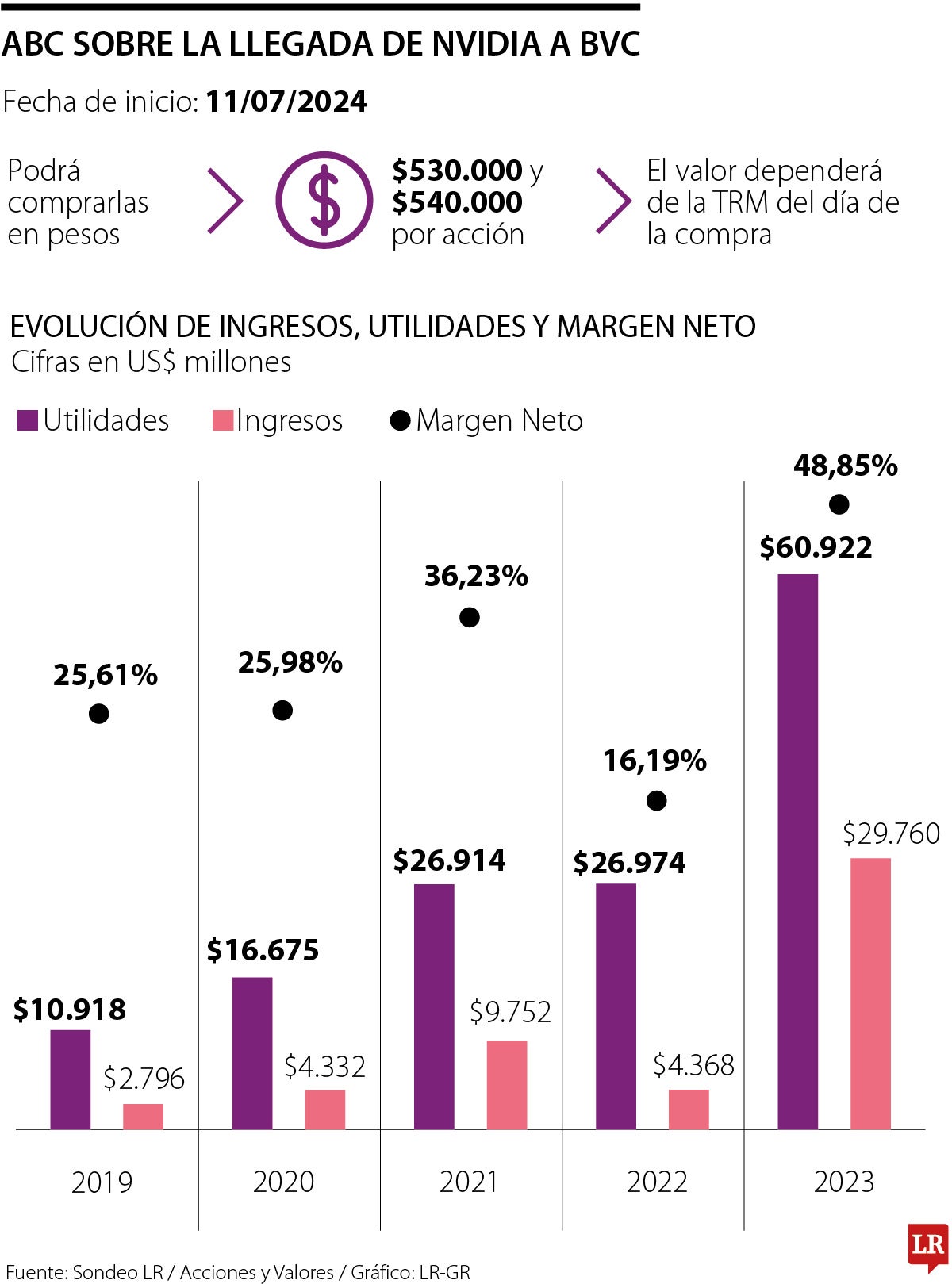 “La acción de Nvidia se negocia en la Bolsa de Estados Unidos y ahora se va a negociar a través de la Bolsa de Valores de Colombia. Lo que significa que esas acciones, que ya están en circulación en Estados Unidos, se van a negociar acá”, explicó Diego Blanco, director de Estrategias de Inversión en Acciones & Valores.