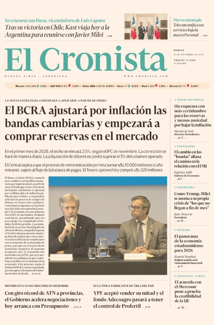 El presidente del Banco Central, dijo también que el país, sexto productor mundial de soja y un importante exportador de carne vacuna, cerrará el 2025 con una inflación de 3,6%