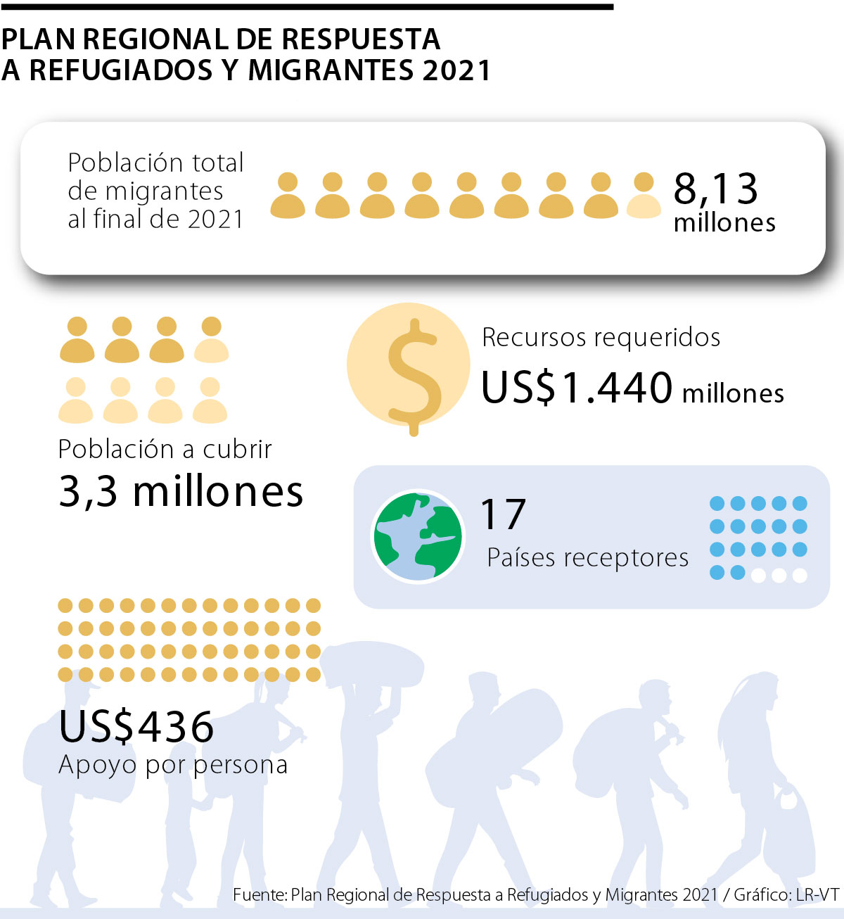 El Plan Regional de Respuesta a Refugiados y Migrantes estima que se requieren US$1.440 millones en 2021 para cumplir la meta