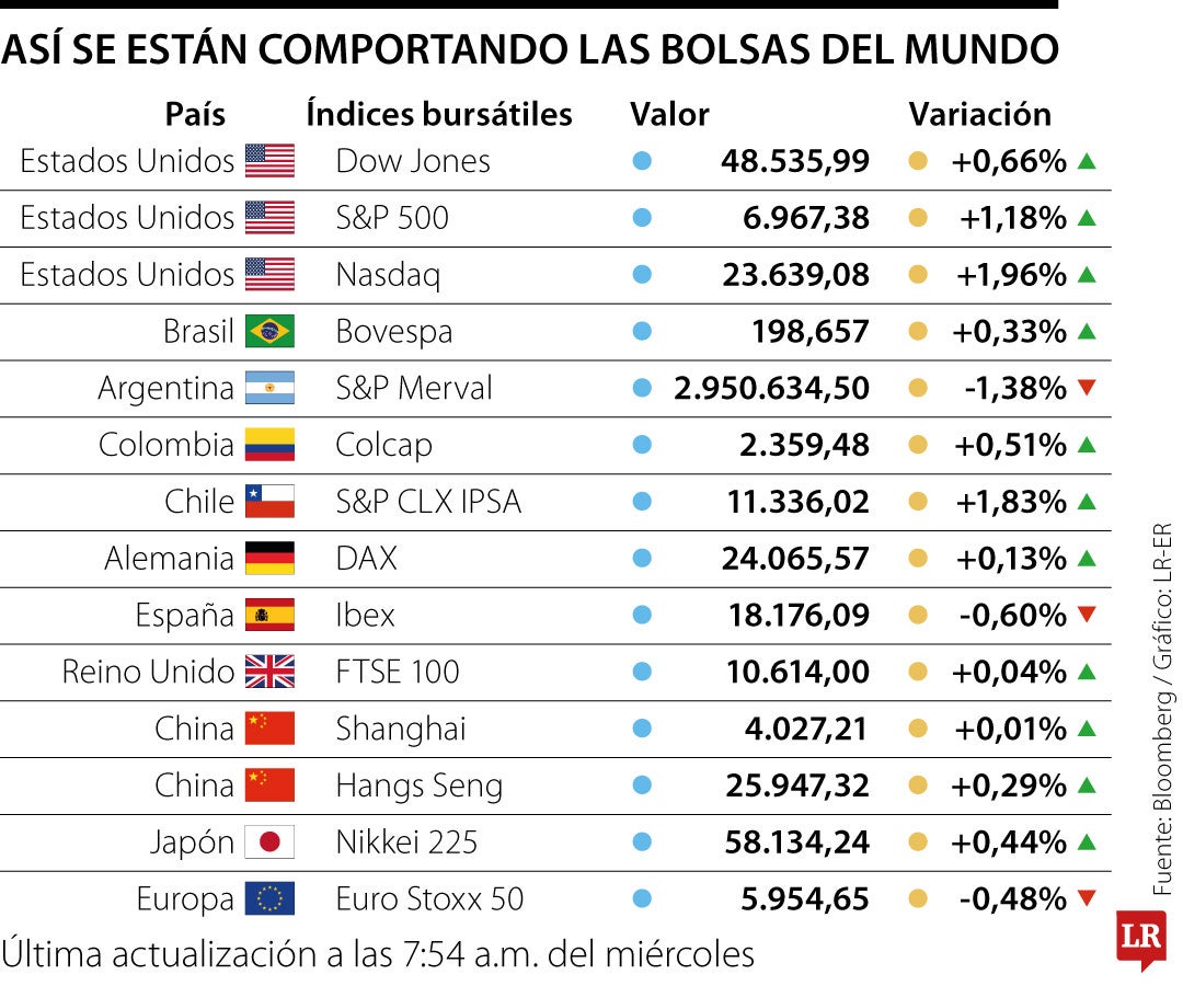El crudo Brent borró las pérdidas iniciales y subió 1%, acercándose a US$96 por barril, mientras Estados Unidos mantenía el bloqueo naval del estrecho de Ormuz. Los bonos del Tesoro estadounidense registraron un ligero descenso, con el rendimiento a dos años subiendo dos puntos básicos hasta 3,76%. El dólar obtuvo modestas ganancias, mientras que el oro cayó hacia los US$4.800 por onza.