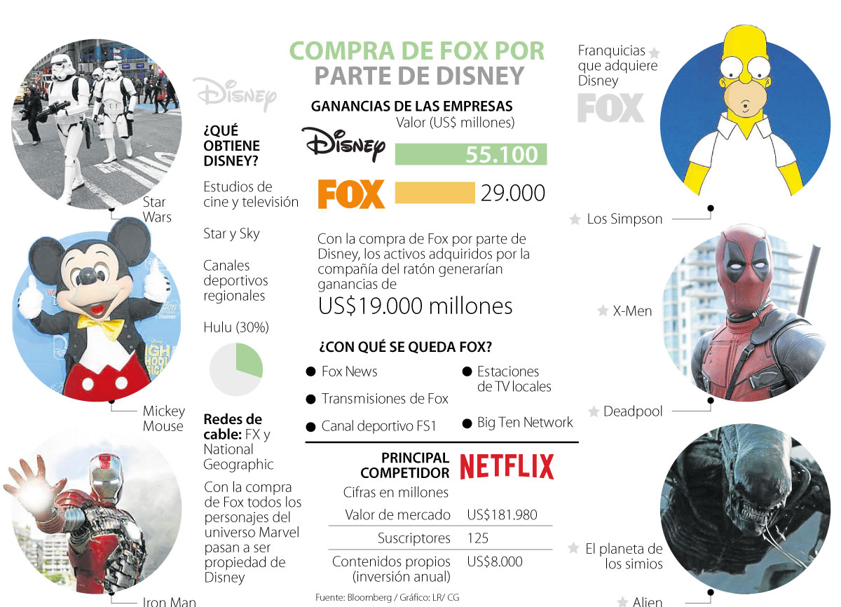 La compra de activos de 21st Century Fox por parte de The Walt Disney Company es el negocio del momento. Luego del retiro de Comcast la semana pasada, en medio de su interés de pujar por la adquisición de Sky, la oferta de US$71.300 millones anunciada el mes pasado le permitirá a la compañía del ratón hacerse con US$19.000 millones que dejaron en ganancias los activos que le compró a Fox.