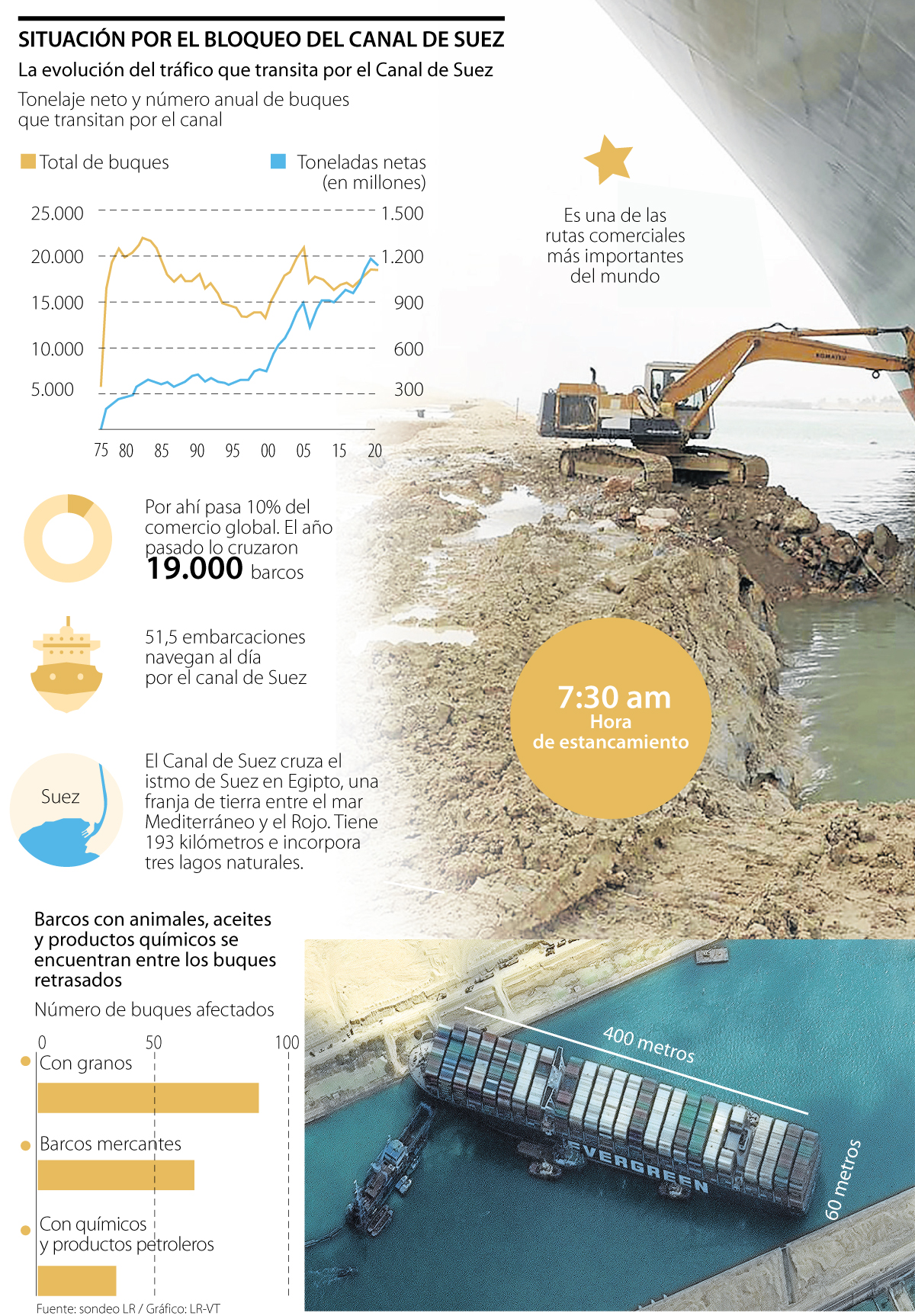 Por el encallamiento de Ever Given en el estrecho ubicado en Egipto, el desvío de los buques podría sumar US$300.000 adicionales