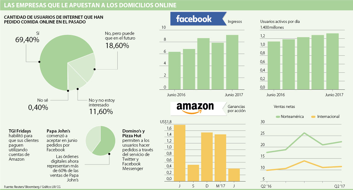 Las ventas en línea de los restaurantes encontraron a dos nuevos aliados: el gigante del comercio electrónico, Amazon, y la red social más grande, Facebook. Un informe de Bloomberg reportó la manera en la que los establecimientos de comida están aprovechando el alcance de ambas plataformas para potenciar sus negocios a través de internet.