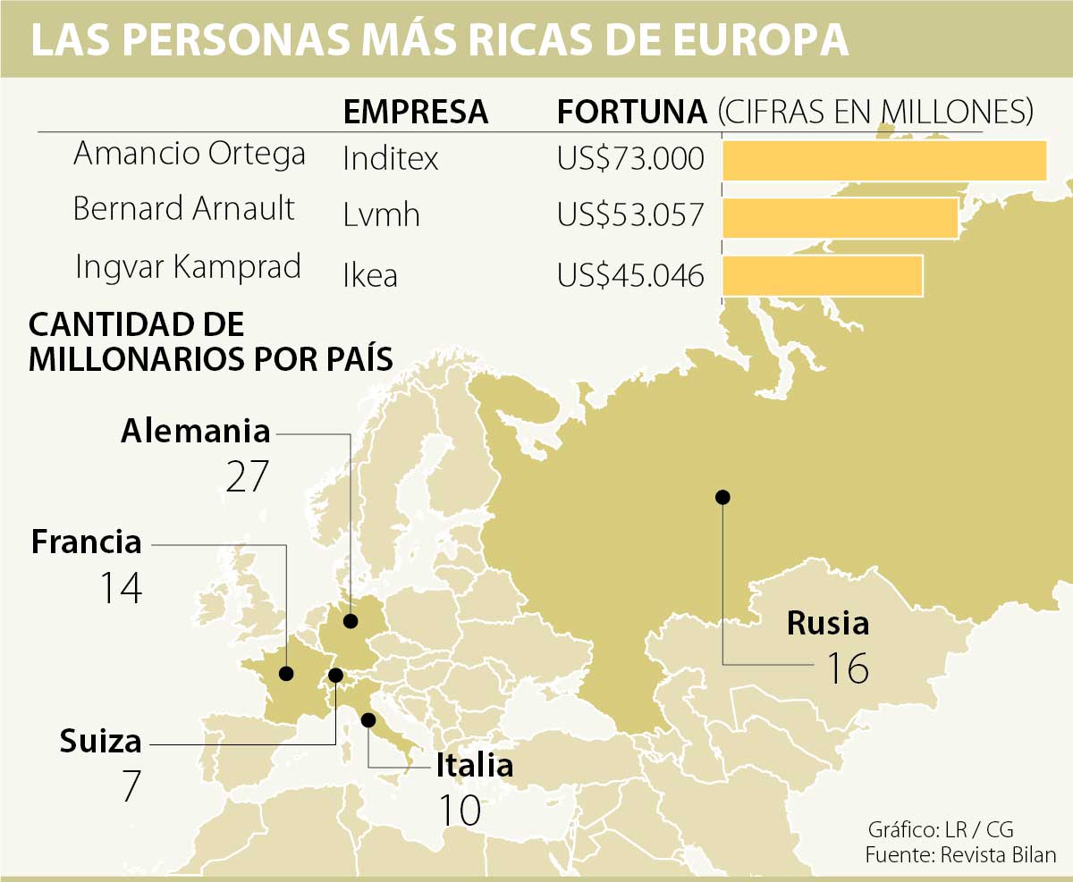 La revista suiza Bilan publicó su índice anual de los 100 hombres más ricos de Europa. En el primer lugar, se consolidó el español Amancio Ortega, dueño de Inditex.