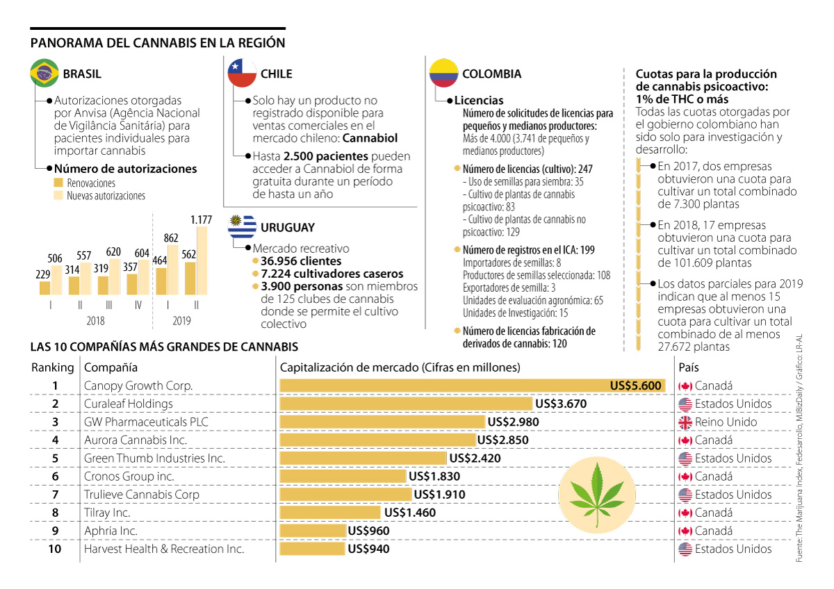 En la región, Brasil es el mayor mercado para el cannabis, mientras que Colombia es el país que más inversión atrae.