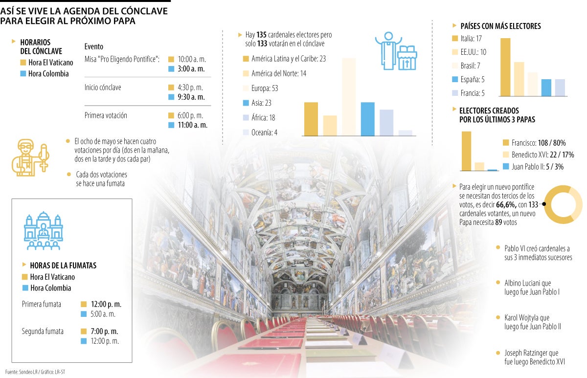 Hoy se realizará una primera votación a las 6:00 p.m. hora Roma, que son las 11:00 a.m. en Colombia, pero entre los vaticanólogos no se contempla que salga un ganador.