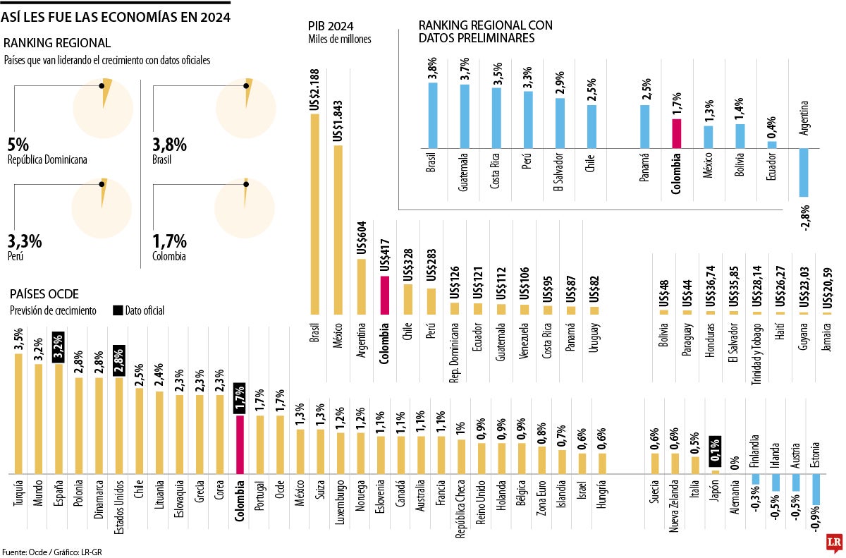 Aunque aún faltan varios países de la región por reportar sus datos oficiales sobre el comportamiento de la economía durante 2024, ya se puede ir recreando una imagen de los que van liderando el ranking.