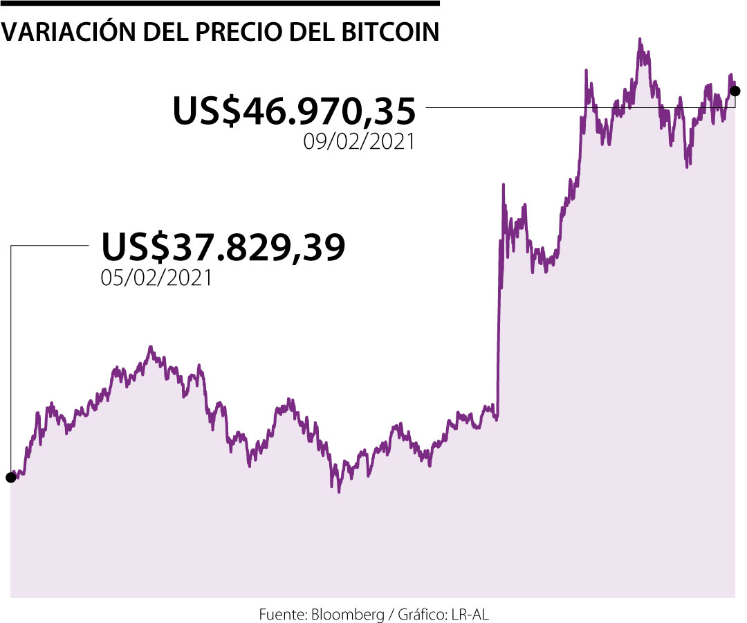 El lunes, el bitcoin trepó un 20% después de que Tesla anunció una inversión de 1.500 millones de dólares y que aceptaría la criptomoneda como pago para sus autos. Se trató del avance diario más grande en más de tres años.