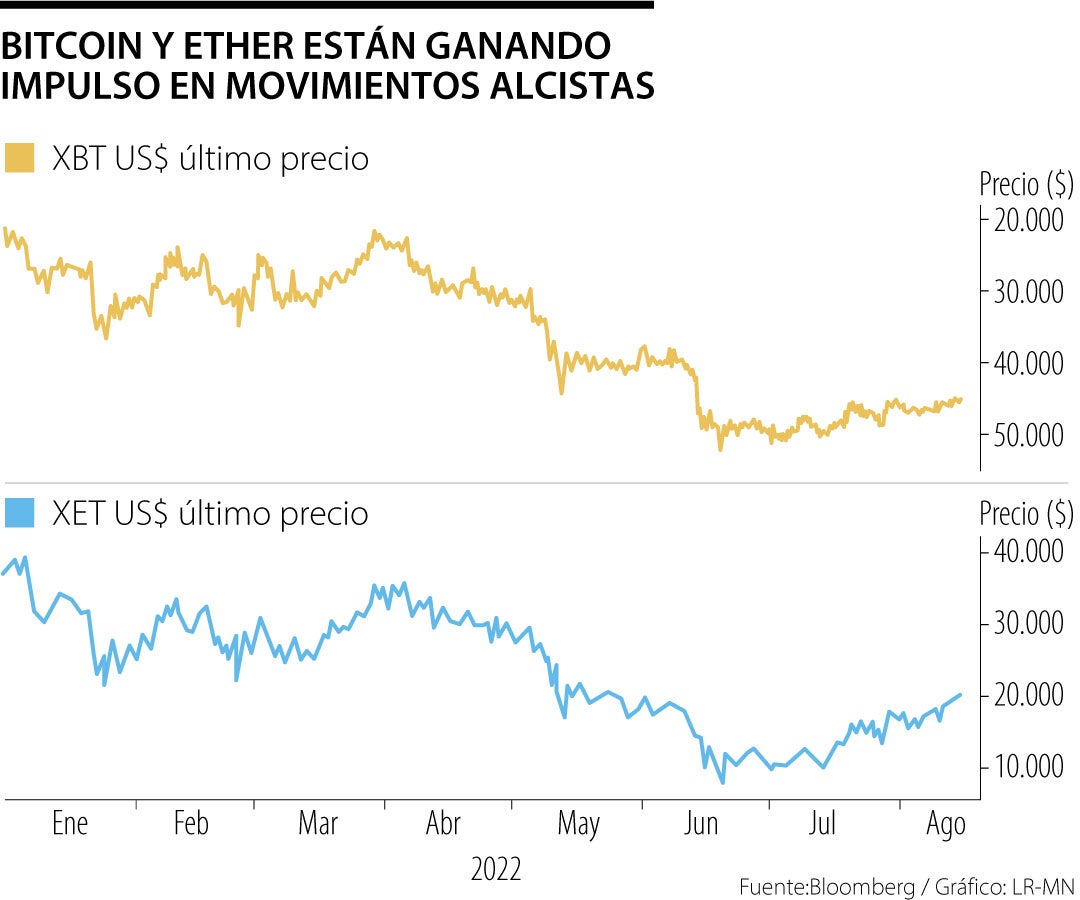 La criptomoneda más grande subió hasta 2,2% el domingo a $25.031, su nivel más alto desde el 13 de junio. Se negociaba alrededor de $24.750 a las 6 a. m., hora de Nueva York, subiendo por quinto día consecutivo en una racha impulsada por los datos del índice de precios al consumidor de EE.UU. que estuvo por debajo de las expectativas. Ether ganó hasta 2% a US$2.030,50, habiendo superado los US$2.000 el sábado por primera vez desde el 31 de mayo en medio del optimismo sobre la finalización de la tan esperada actualización de software de su blockchain conocida como Merge.