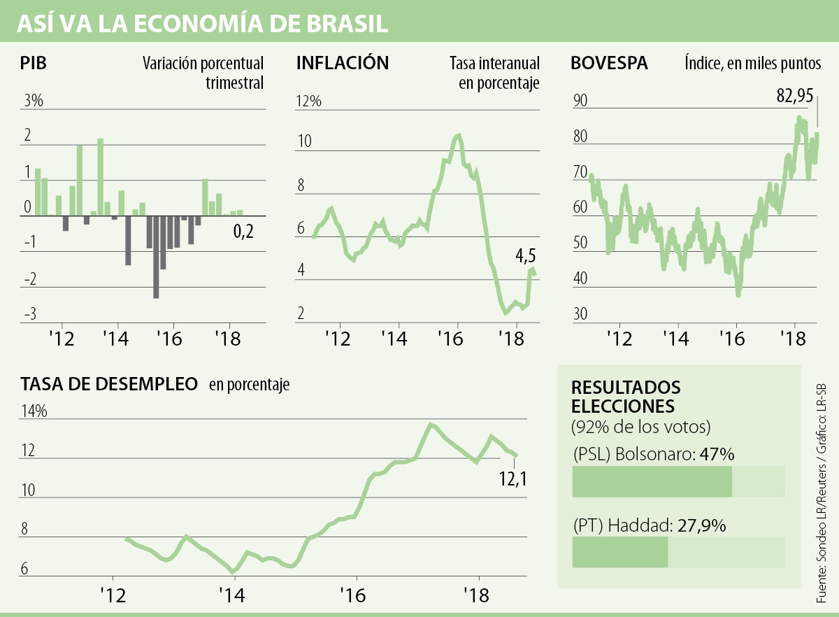 El paso a segunda vuelta entre Bolsonaro y Haddad profundizará la polarización en un país necesitado de reformas, en plena recuperación tras años de recesión. La agenda económica volverá a tener sobre la mesa el cambio sobre las pensiones, que tienen un costo de 12% del Producto Interno Bruto. El actual presidente Michel Temer intentó corregir el problema con una reforma previsional, pero en medio del escándalo del Lava Jato y la protesta de camioneros, no logró sacar adelante el proyecto de ley.