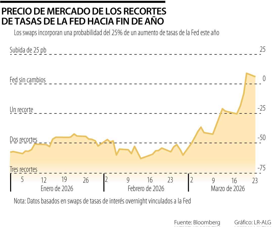 Las expectativas de que la Reserva Federal recortara las tasas de interés este año se desplomaron la semana pasada, y fueron reemplazadas por apuestas moderadas a un aumento de las tasas, ya que la acción militar estadounidense contra Irán impulsó el alza de los precios de la energía, lo que avivó la inflación.