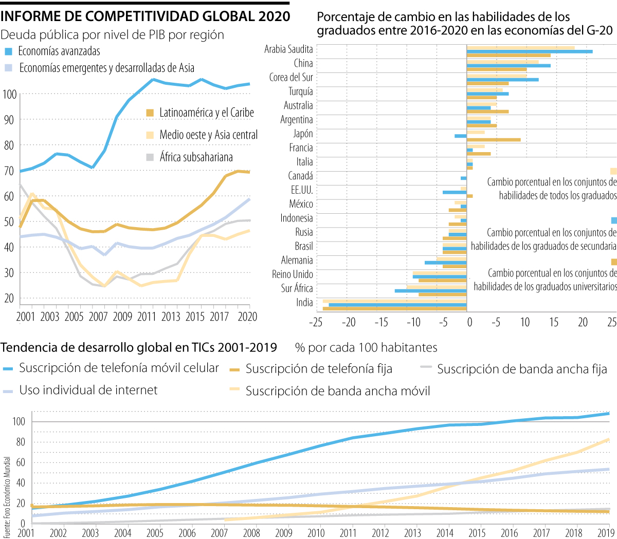 Luego de que la pandemia desatada por el coronavirus golpeara las economías de todo el mundo, el Foro Económico Mundial (FEM) , en su último informe sobre competitividad global, anunció que la recuperación económica del planeta dependerá de la inversión que los gobiernos hagan en materia de salud, transporte, vivienda, digitalización y transición energética.