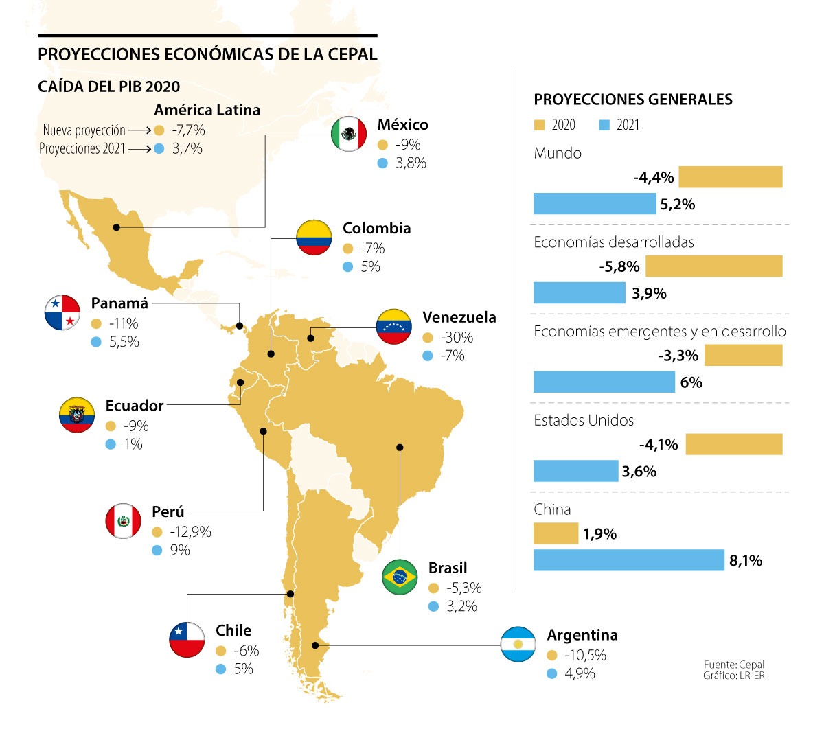 Con las vacunas cada vez más cerca, y el 2021 a unos cuantos días, las economías de todo el mundo le apuntan al proceso de recuperación. Al respecto, la Comisión Económica para América Latina y el Caribe (Cepal) actualizó sus proyecciones económicas para 2020 y 2021.