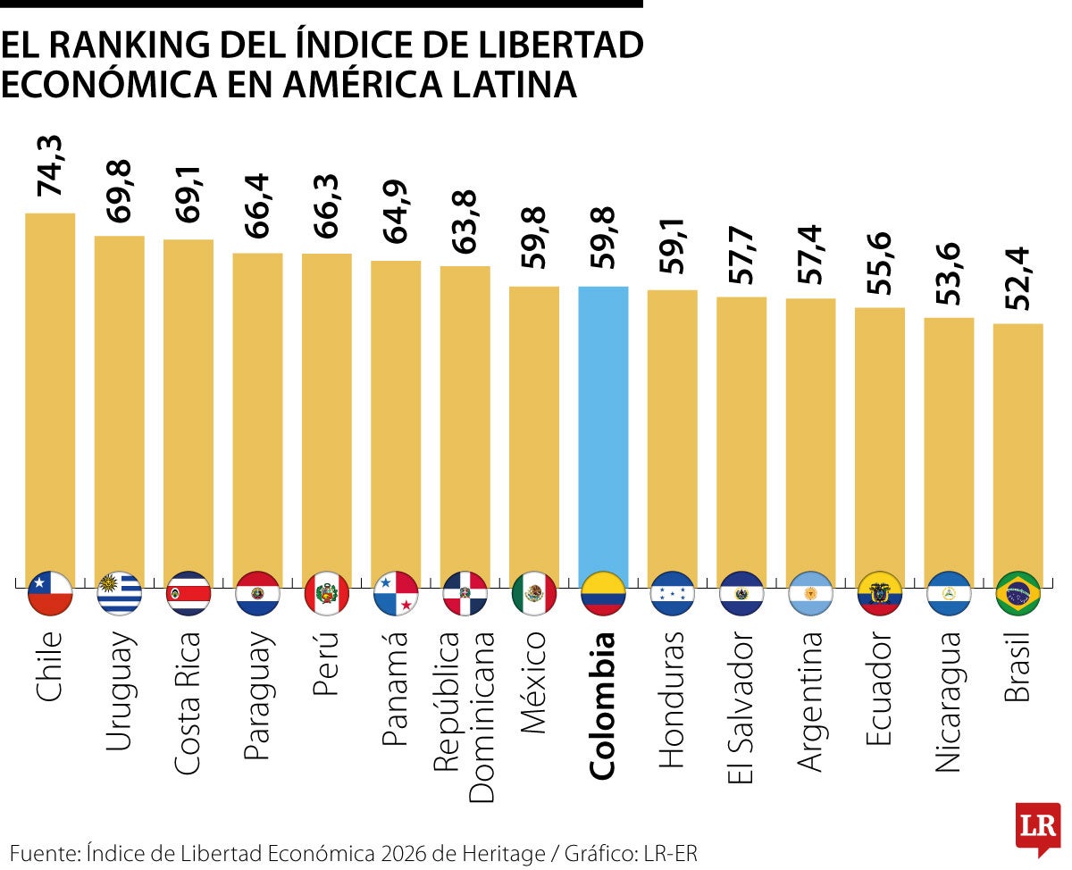 Sin embargo, un país de la región destacó al mejorar significativamente su calificación en el índice de 2026: Argentina logró aumentar 3,2 puntos en comparación con el año anterior. Heritage lo atribuye a las recientes reformas regulatorias, monetarias y fiscales del presidente Milei que han reducido el tamaño del gobierno.