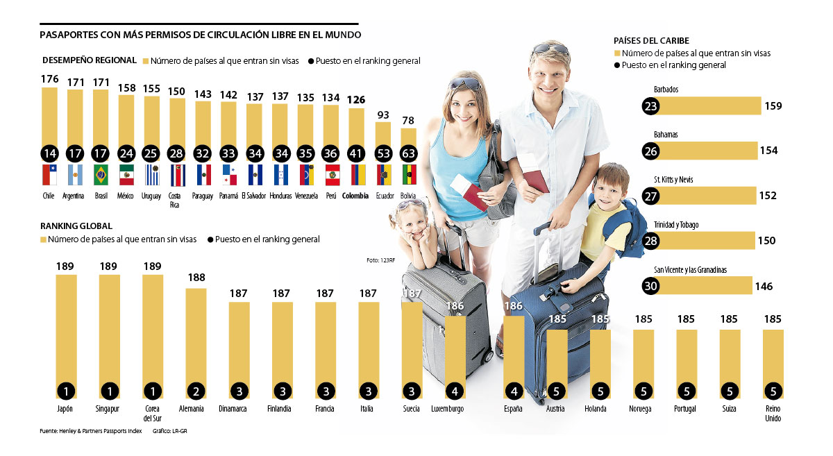 En el mismo listado, Colombia ocupa la casilla número 13 con 126 territorios donde tiene libre acceso.