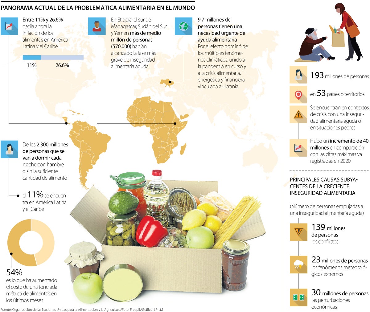 Según el Programa Mundial de Alimentos (PMA) de la ONU, de las 2.300 millones de personas que se van a dormir cada noche con hambre o sin la suficiente cantidad de alimentos para desarrollar su vida de manera normal, cerca de 11% se encuentra en América Latina y el Caribe.