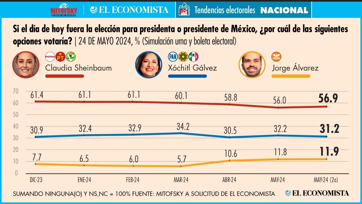 Recientemente se emitió la última encuesta acional de “tendencias electorales” de Mitofsky la cual la aventaja frente a Xóchitl Gálvez