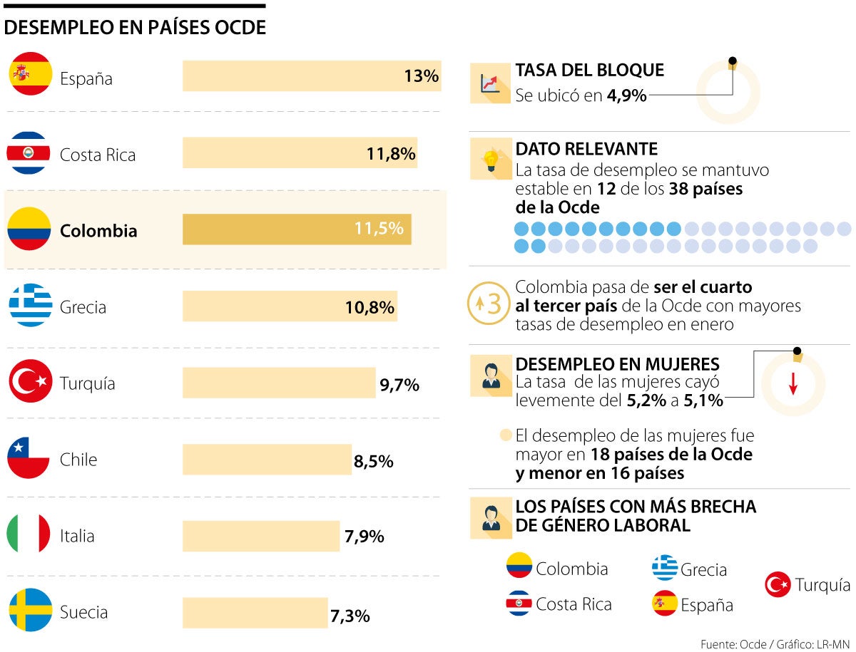 En un nuevo indicador de la Organización para la Cooperación y el Desarrollo Económicos (Ocde) sobre los países con la mayor tasa de desempleo, Colombia volvió a ocupar los primeros lugares, incluso, subió una casilla en este indicador negativo.