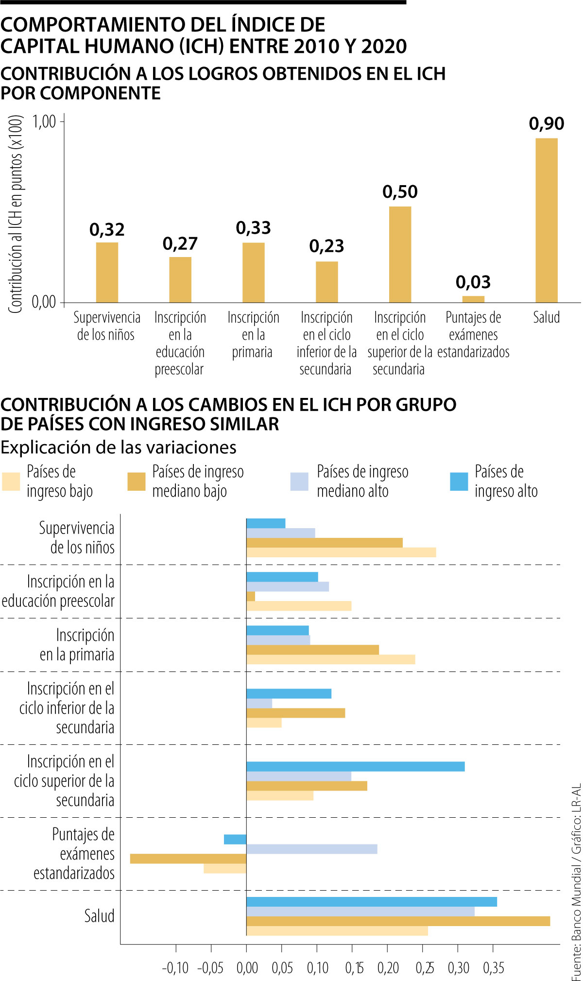Durante el último año, en la región, solamente Perú, Ecuador y El Salvador lograron un crecimiento de entre o,5 y 0,15 puntos en el Índice de Capital Humano (ICH), además de estar en el grupo de países con mayores incrementos a nivel mundial.