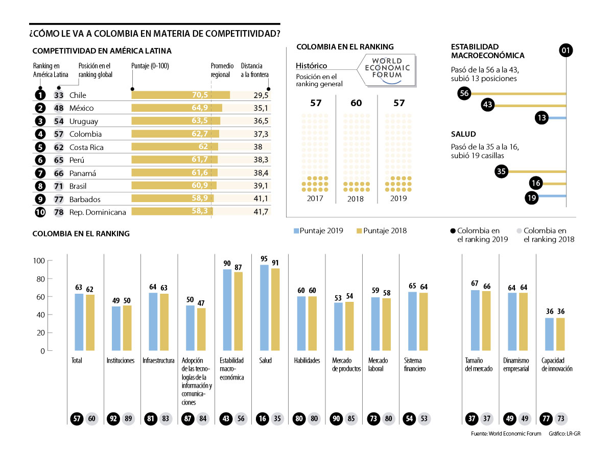 “Uno de los factores más importantes que hay que destacar para esta entrega es que la posición que ocupó Colombia para esta edición es muy próxima a Uruguay, son tres puestos de diferencia en el ranking general y menos de un punto en la puntuación, es algo que nos muestra que Colombia pronto pasara a esa economía y quizás a otras más”, señaló Córdoba.