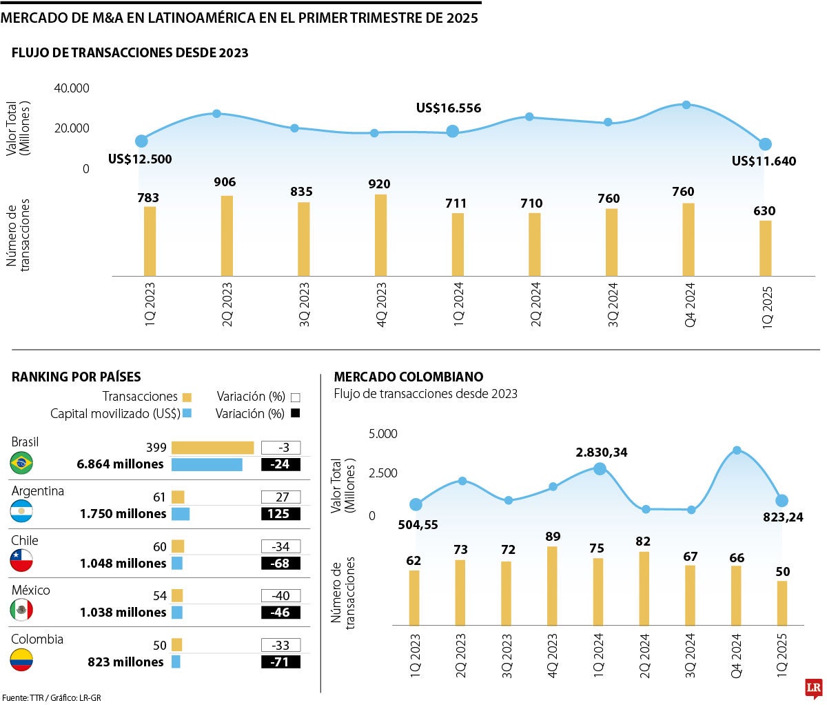 Transactional Track Record (TTR) reveló los resultados del mercado de fusiones y adquisiciones para el primer trimestre de 2025 en la región. El resultado fue una caída de 11%. El mercado de la región registró un total de 630 movimientos, entre tratos cerrados y anunciados.