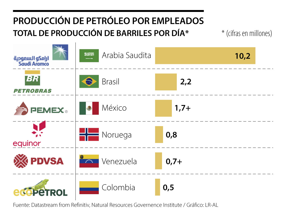 En ese sentido, hace referencia a que en 2013 cuando el precio internacional del petróleo alcanzó US$100 por barril, la mexicana Pemex transfirió aproximadamente la mitad de sus recursos al gobierno de México o que a pesar del aumento en los precios del crudo Petrobras vio cómo bajaba el precio de sus acciones debio a que se cargó de deuda e invirtió en proyectos marginales.