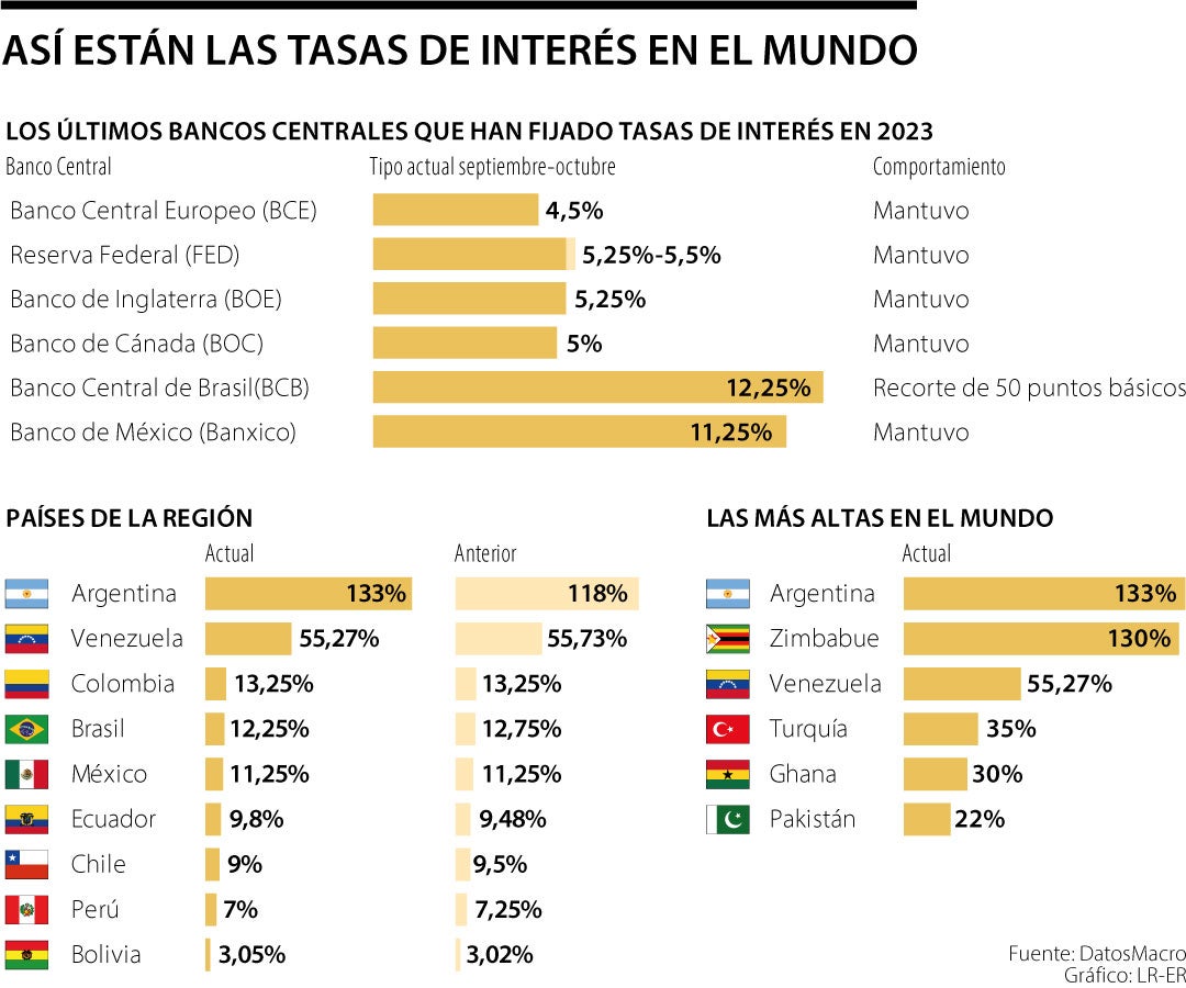 Argentina y Venezuela lideran el listado de los países con las tasas más elevadas. Se destaca que Brasil y México están camino a recortarlas