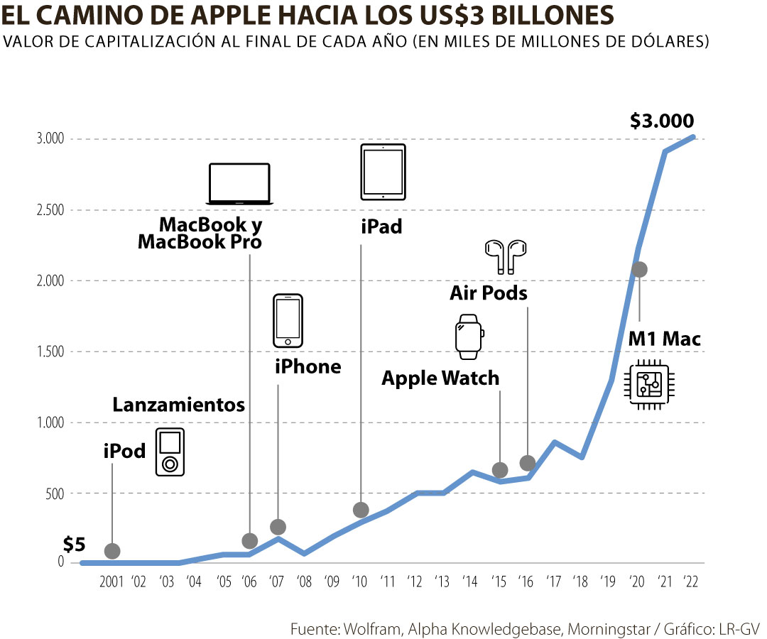 El pasado 3 de enero se dio a conocer que Apple se convirtió en la primera compañía en alcanzar una capitalización en el mercado de US$3 billones, un hito teniendo en cuenta situaciones críticas como el impacto de la pandemia por el covid-19 y la escasez mundial de semiconductores, que tuvo una repercusión negativa en la industria tecnológica.
