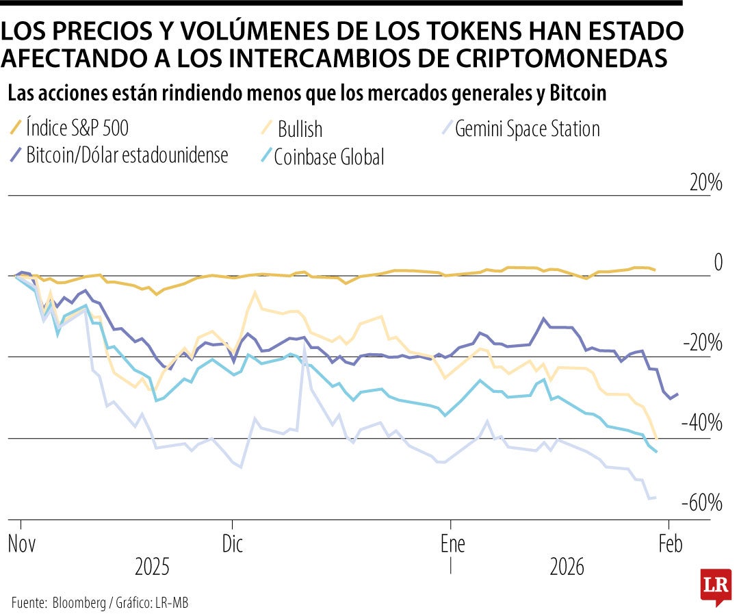 El Bitcoin ha caído más de 35% desde su desplome en octubre, tras alcanzar máximos históricos. Sin embargo, para plataformas como Coinbase Global Inc., Gemini Space Station Inc. y Bullish, el impacto ha sido mayor.