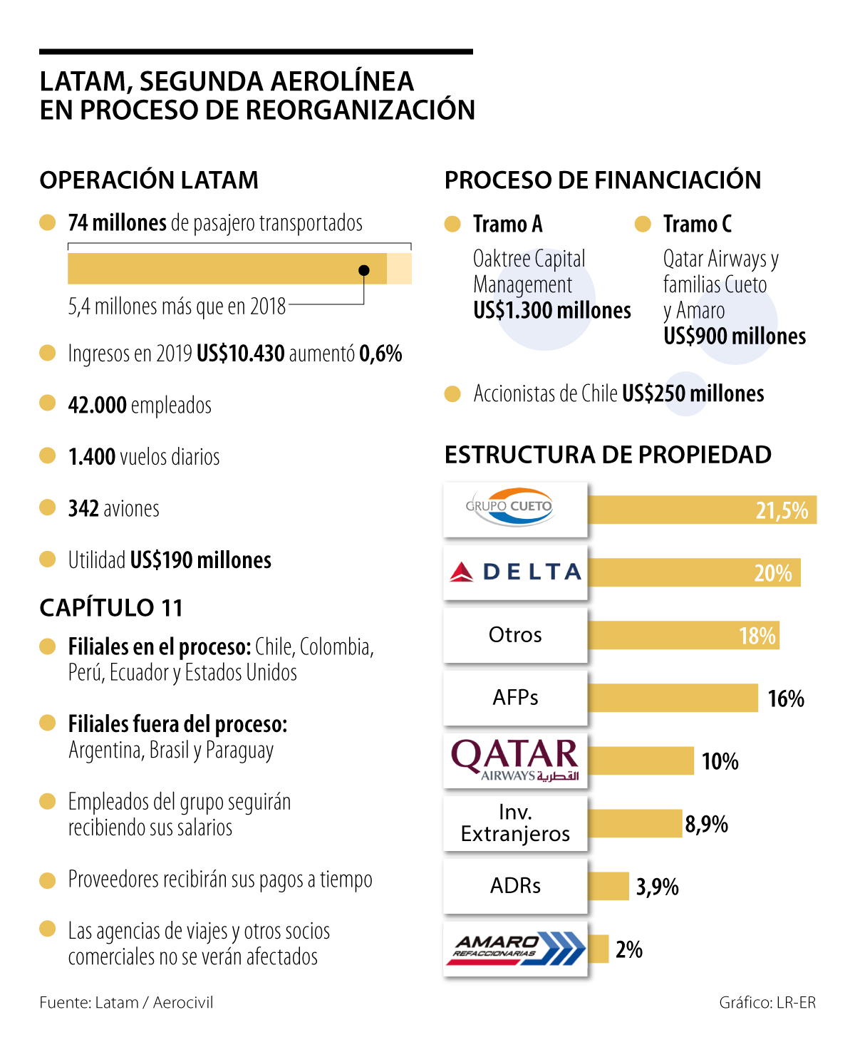 La aerolínea además comunicó que su filial brasileña también se acogió al capítulo 11 de la ley de quiebras en Estados Unidos, ya que los efectos económicos que ha significado la prolongación de la pandemia obligaron a la entidad a acogerse al procedimiento para reestructurar sus pasivos, manteniendo su continuidad operacional, además de facilitar su acceso al financiamiento DIP (Deudor en posesión).