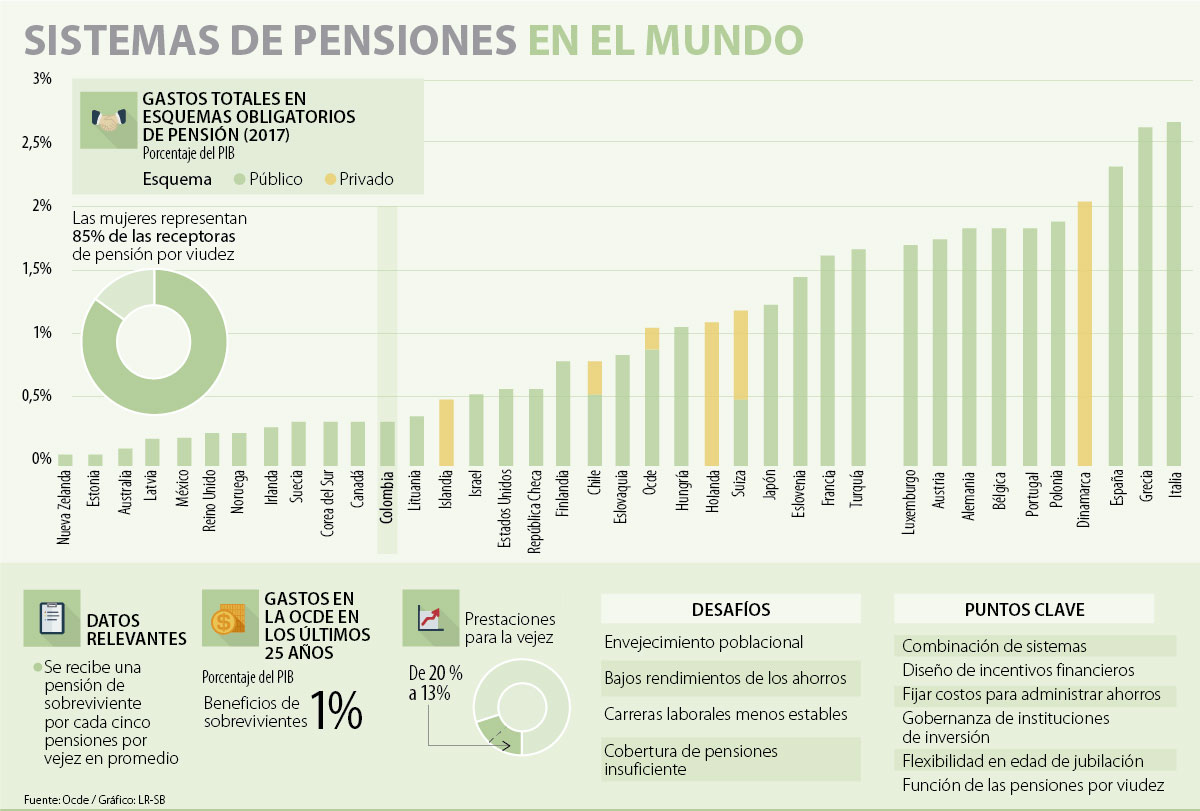 Para la Ocde, el primer aspecto clave es la combinación de sistemas pensionales traducida en una red de seguridad social que agrupe los mayores beneficios posibles para los adultos mayores, así como la realidad demográfica y económica de una nación. Esto teniendo en cuenta que se requiere un esquema que combine “los objetivos de combatir la pobreza y ajustar el consumo con los riesgos financieros que puedan existir en el proceso”.