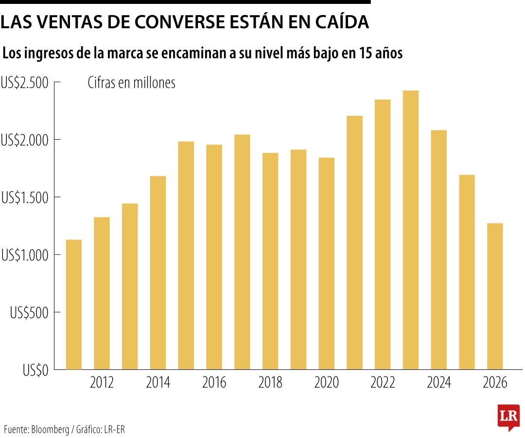 Las ventas de Converse, con sede en Boston, representaron menos de 3% de los US$12.400 millones de ingresos totales de Nike en el trimestre que finalizó en noviembre. Si bien es una cifra pequeña, Converse ha frenado el impulso de Hill para reactivar el crecimiento, y la mejora en otras áreas de Nike ha acentuado la debilidad de la marca.
