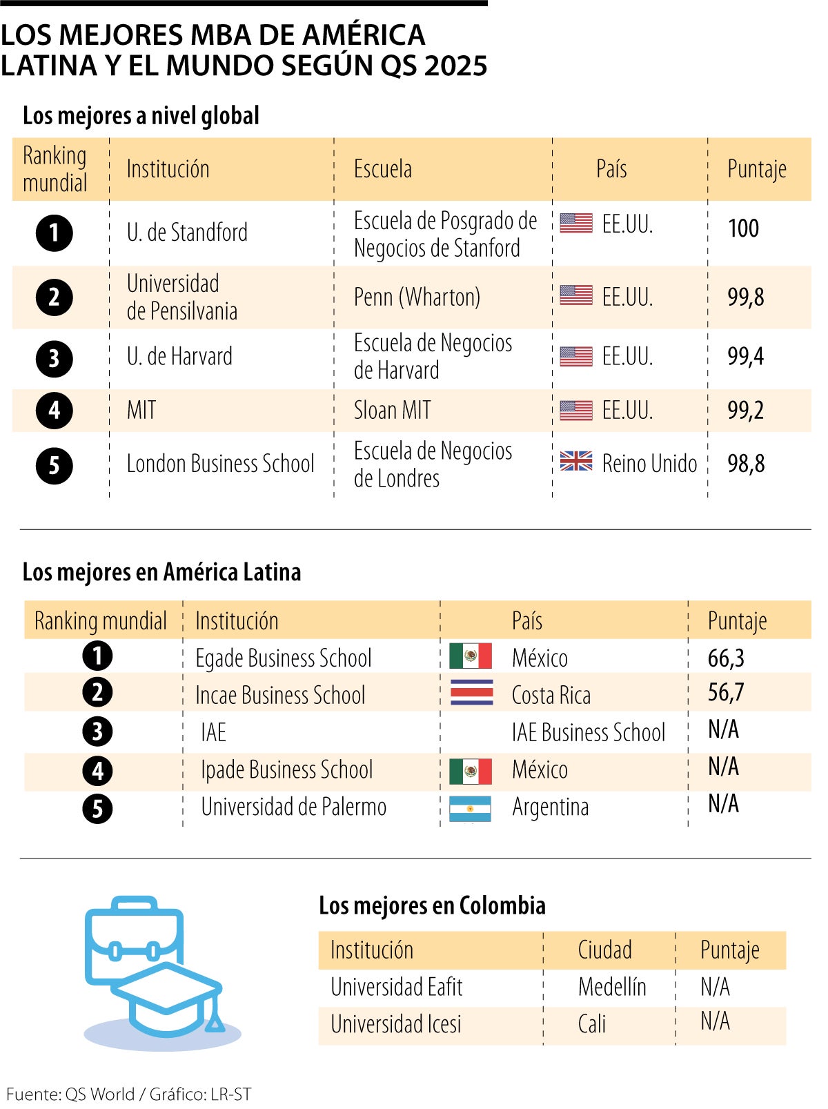 En la edición 2025 que acaba de actualizar QS, solo hay 12 programas de MBA destacados en América Latina, los cuales son los de la Universidad Eafit y de la Universidad Icesi.