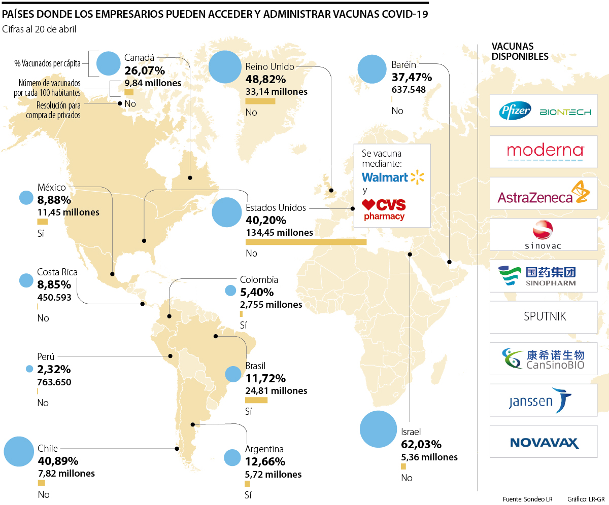 Mientras en el mundo se debate la escasez de vacunas y los efectos negativos de la aprobación de compras por parte de privados, cinco países de las Américas dan un paso adelante y regulan la intervención de empresarios dentro de los planes de vacunación.
