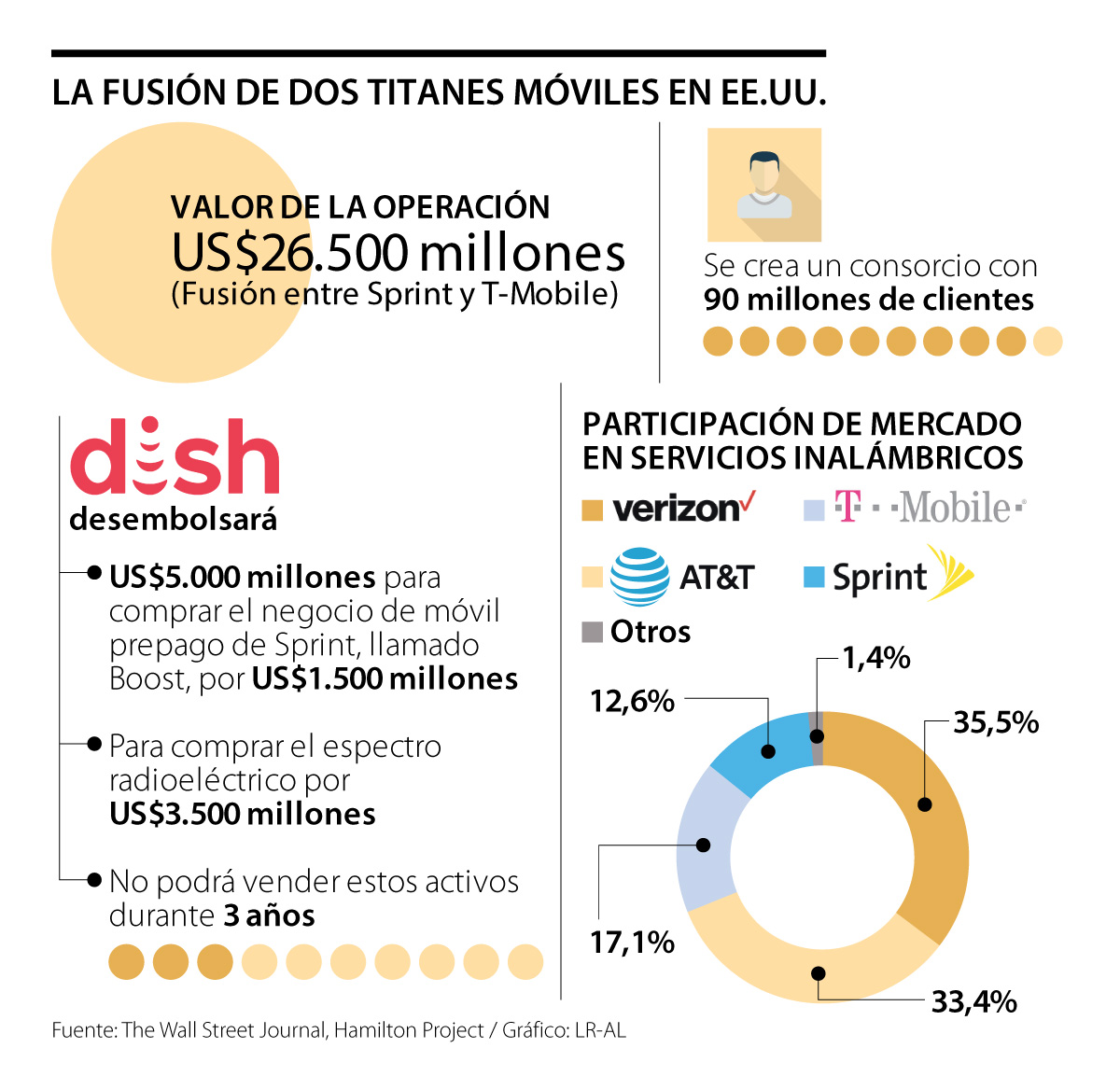 Uno de los acuerdos pactados para alcanzar los objetivos en materia antimonopolio es vender la marca prepago de Sprint, llamada Boost, al operador de televisión Dish. “Un acuerdo negociado por el Departamento de Justicia plantea que Dish, que se ha mantenido en redes aéreas valiosas, construya una red 5G para clientes de teléfonos celulares. Para ayudarlo a comenzar, T-Mobile venderá las marcas prepagas de Sprint a Dish y le dará acceso a la red del operador combinado durante siete años”, reza parte del artículo publicado por The Wall Street Journal.