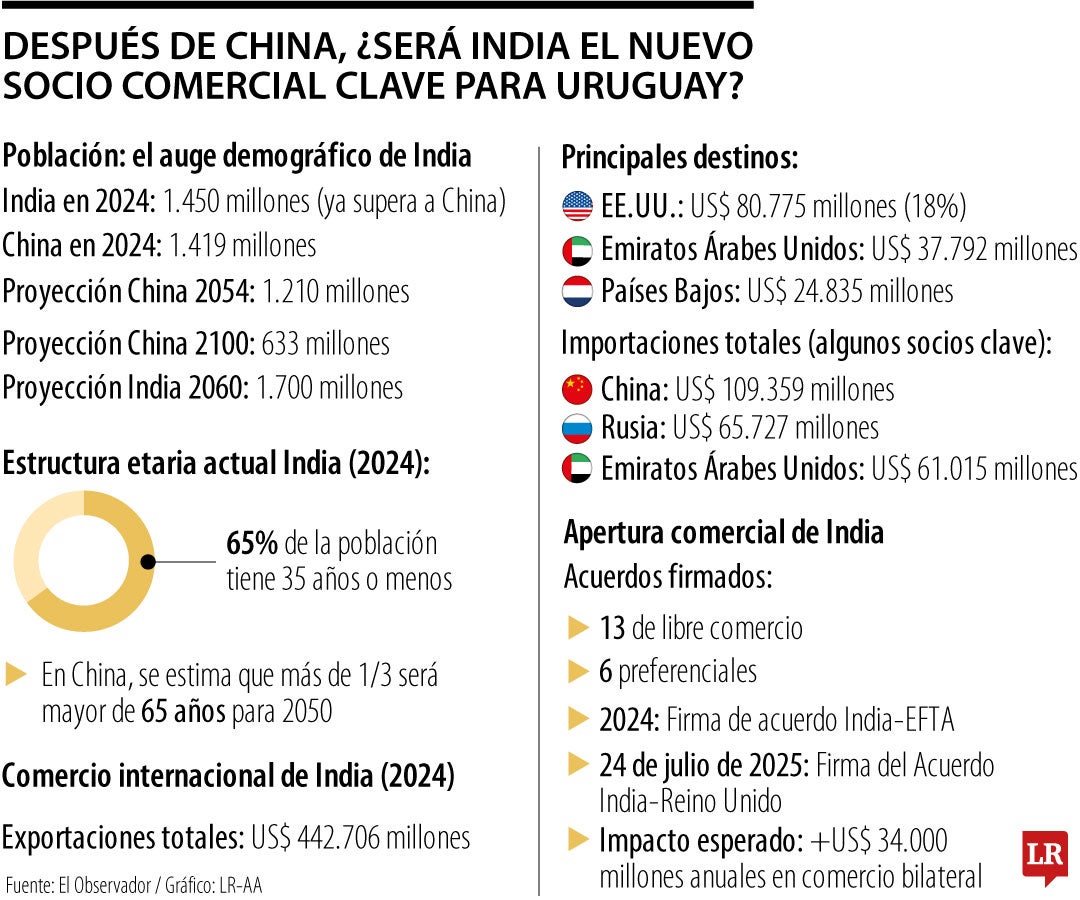 Después de China, ¿será India el nuevo socio comercial clave para Uruguay?