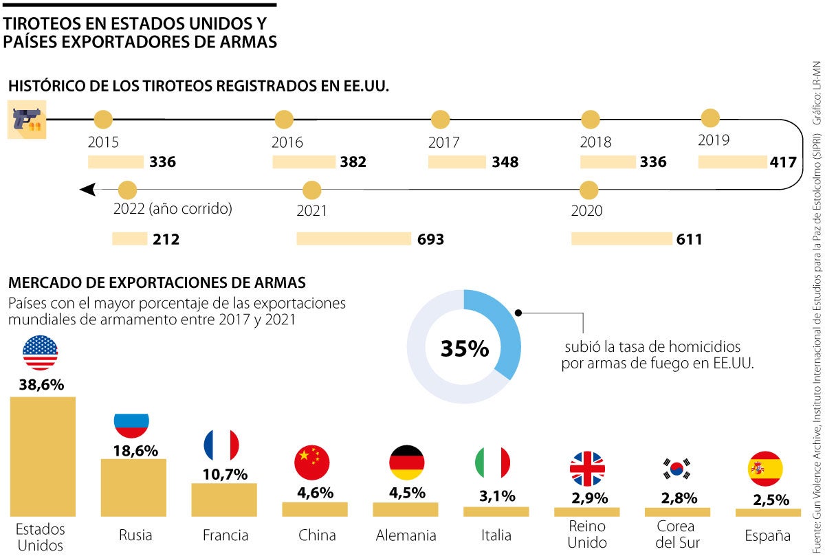 Solo unos pocos tiroteos masivos en Estados Unidos se han registrado por los medios del mundo, por lo que es aún más grave lo que se sabe del impacto de este fenómeno social en ese país. Pero a luz del Gun Violence Archive (GVA, por sus siglas en inglés), la Unión Americana ha vivido más de 210 episodios de este tipo en lo corrido del año, siendo lo más reciente el atentado en un colegio que dejó dos profesores y 19 niños muertos en Texas.