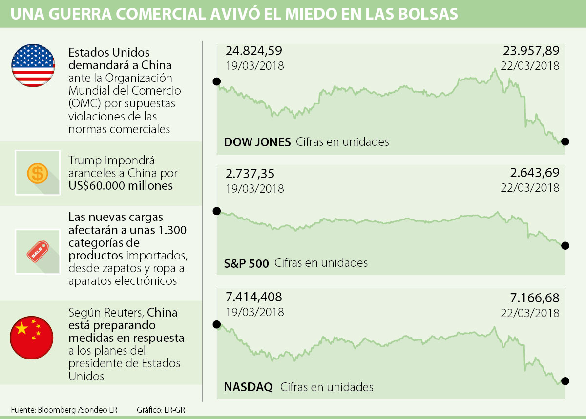 Los temores de una guerra comercial no se detienen y el presidente de Estados Unidos, Donald Trump, es el encargado de avivarlos. A los aranceles que impuso contra las importaciones de acero y aluminio, se sumaron las medidas que tomó ayer contra las compras externas que se hacen en su país y que llegan desde China. La decisión impactará US$60.000 millones y busca contrarrestar los abusos que el mandatario norteamericano cree que comete el gigante asiático.