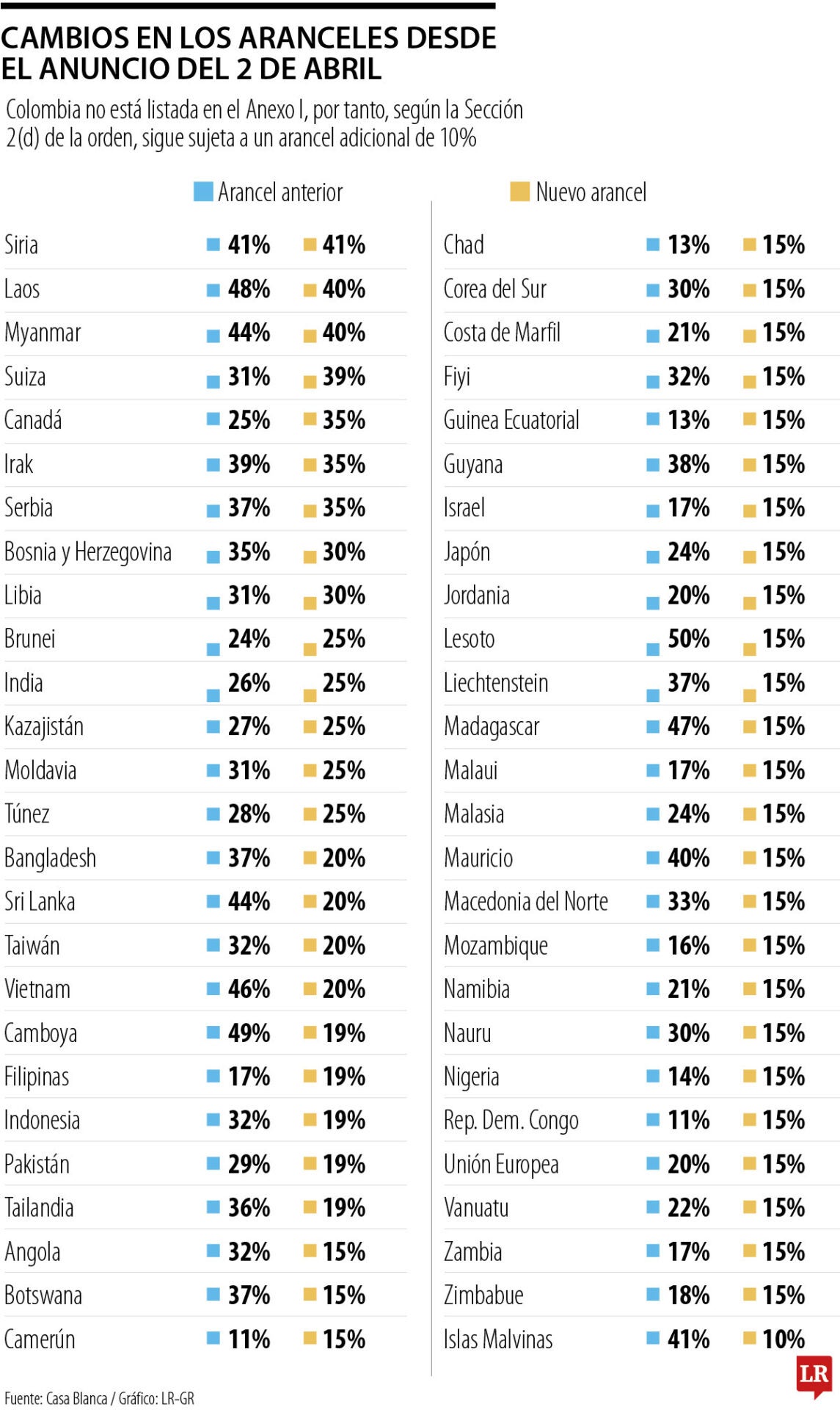 Cambios en los aranceles desde el anuncio del 2 de abril