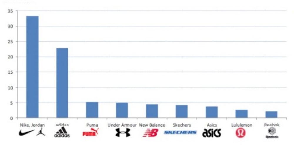 En Estados Unidos, las principales marcas de zapatillas deportivas son las siguientes (considerando ventas proyectadas el 2018):