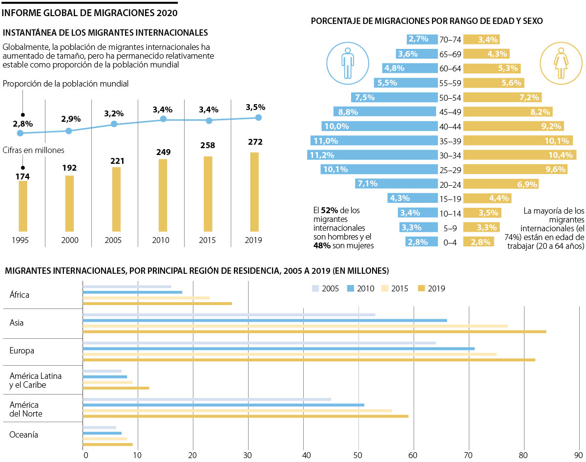 De acuerdo con el más reciente informe de la Organización Internacional de Migración, se estima que en el mundo hay cerca de 272 millones de migrantes internacionales, y que casi dos tercios de ellos son migrantes laborales.
