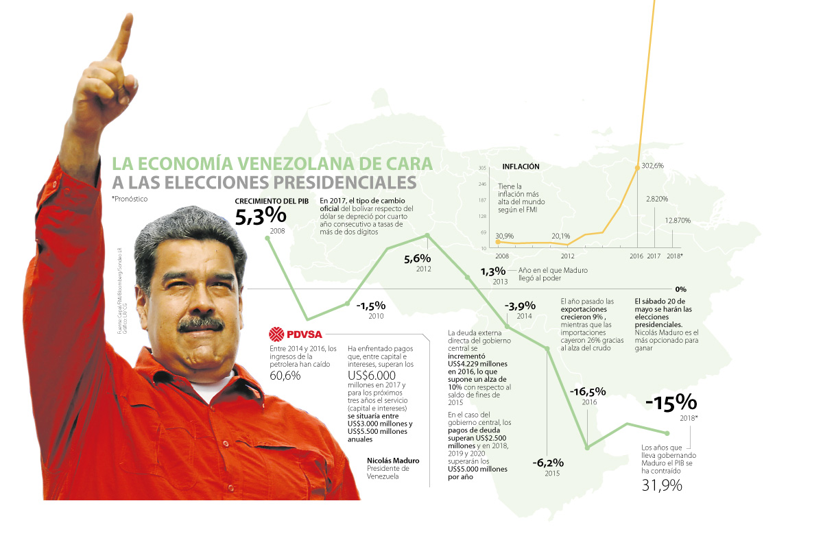 Desde que el que también fuera canciller de Venezuela llegó al Palacio de Miraflores, el PIB se ha contraído 31,9% según las estimaciones de la Comisión Económica para América Latina y el Caribe (Cepal). Pese a esto, y en medio de una campaña electoral desigual en donde los principales partidos de oposición se negaron a participar, Maduro se encamina a iniciar otro periodo presidencial tras las elecciones del domingo.