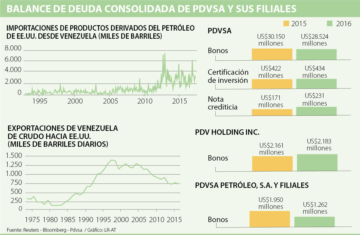La medida significa que “ellos (Pdvsa y el Gobierno venezolano) tienen cada vez menos ingresos”, señaló Camilo Silva, socio fundador de Valora Inversiones. Es decir que a partir del momento en que se efectúen las sanciones habrá menos dinero para pagar la deuda que se vence en octubre de este año y que está por encima de US$3.000 millones.