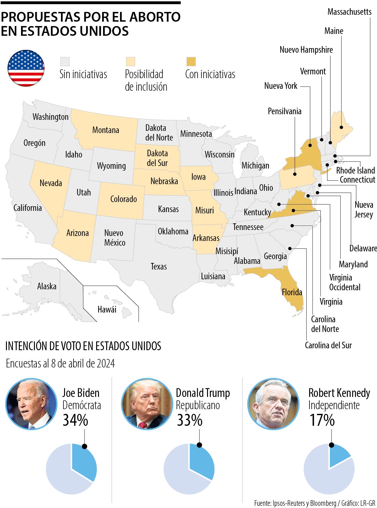 Al mismo tiempo, este año aparecerán ante los votantes en Maryland y Nueva York iniciativas electorales que buscan incorporar protecciones contra el aborto a las leyes estatales, impulsadas por el éxito de los ocho estados donde contiendas similares han terminado con victorias para los derechos reproductivos.