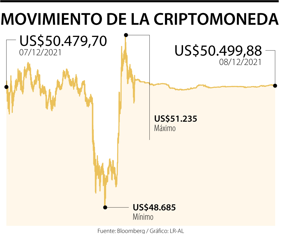 Bitcoin osciló entre ganancias y pérdidas en torno al nivel de precio de US$50.000 dólares, ya que los operadores buscaron dirección tras una de las mayores ventas masivas de un día de este año.