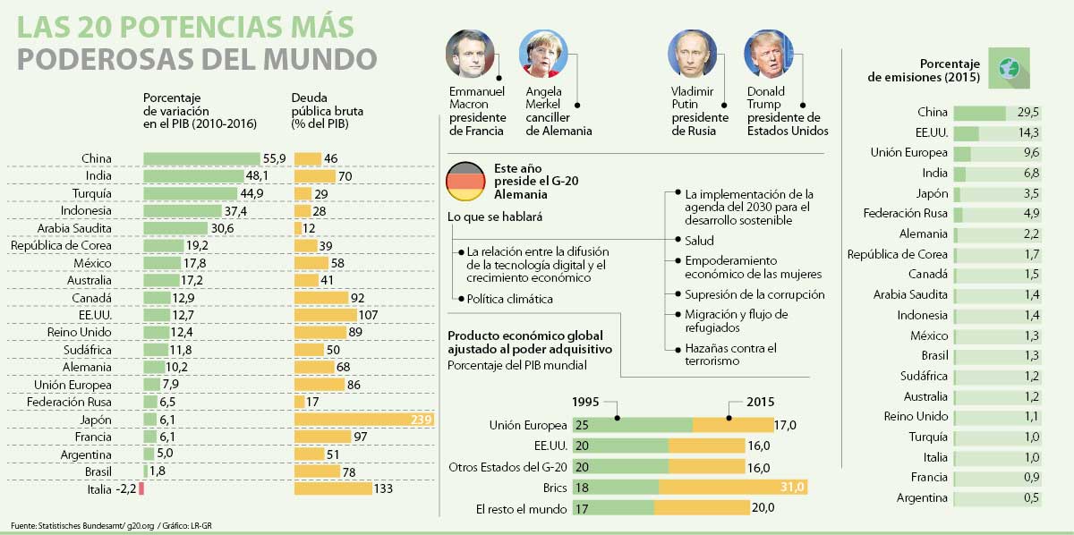 La cumbre de los 20 países con las economías más grandes del mundo inicia hoy en Hamburgo, Alemania. Allí los líderes de estas naciones se reúnen para discutir varios temas, entre ellos la política económica, la salud y la implementación de la agenda del 2030 para el desarrollo sostenible de las Naciones Unidas. Sin embargo, aunque esta reunión es un evento que busca unificar a las potencias, el presidente Trump llega aislado por sus programas sobre el comercio y el cambio climático.